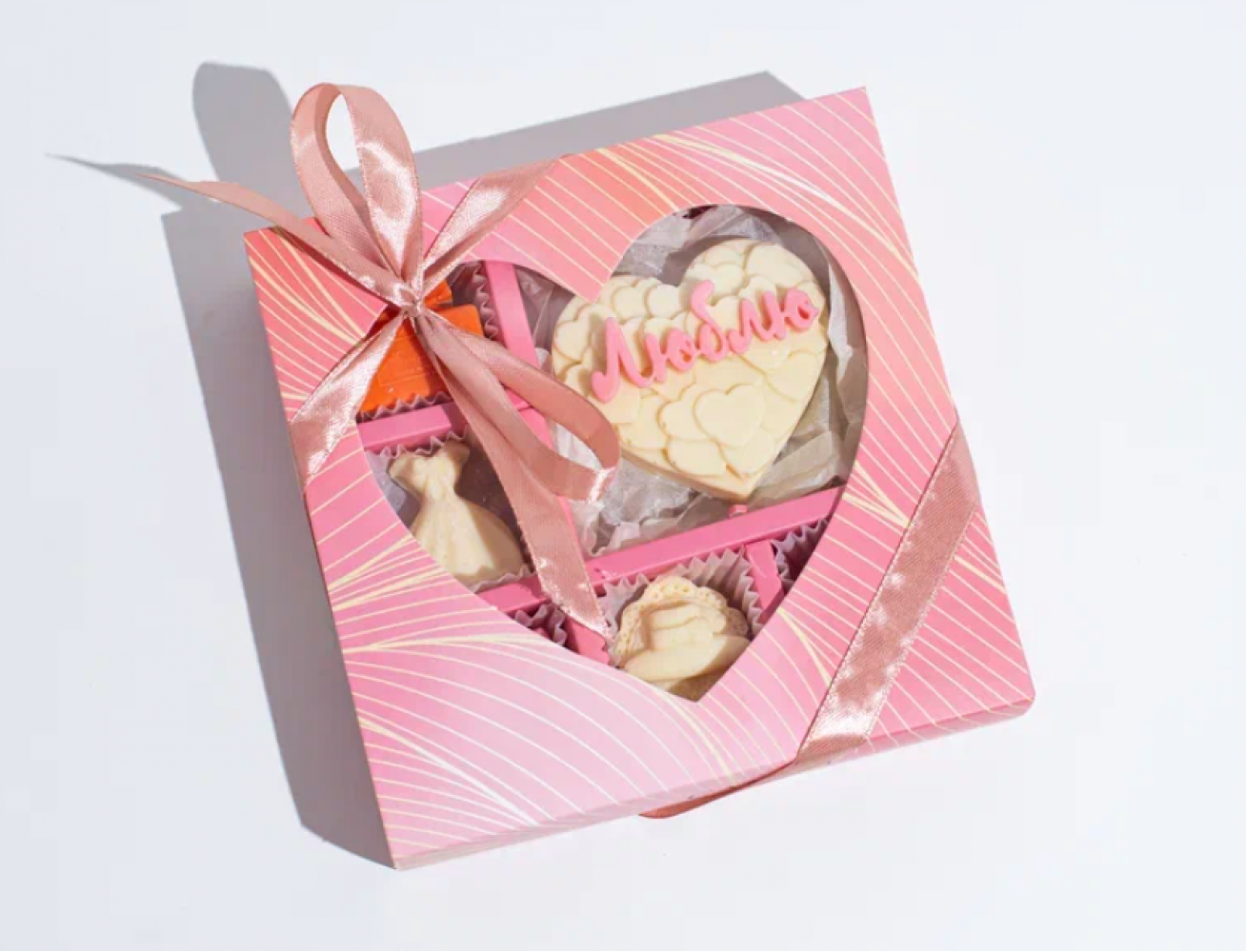 Шоколадный подарочный набор c "Люблю" с сердцем - нежный подарок на любой праздник любимым.