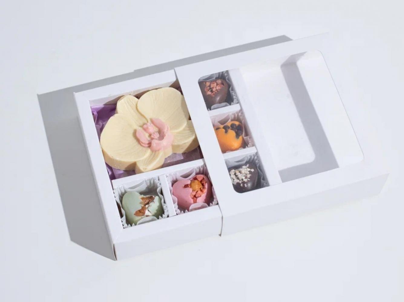 Набор 5 конфет в виде сердца и цветок орхидеи, в подарок к 14 февраля и 8 марта заказать от производителя @choco.cake.hand. Наборы можно заказать в брендированной упаковке или с логотипом изготовителя. Набор шоколадных конфет ручной работы будет отличным сладким подарком на любой праздник и подарит минутки сладкого удовольствия.